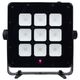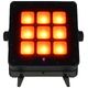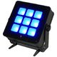 Ape Labs Marvel Flood Install; High-performance pixel LED light for use as uplighting and stage lighting; Marvel variant without battery, mains power only; 9 LEDs, each 18 watts, as controllable pixels, multipixel presets controllable via app and remote; LED type: 7 mm chip RGB + warm white (2700K) + cool white (6000K) + lime; homogeneous light pattern, homogeneous color mixing; full flexibility in color, brightness, effects, and programs; Color rendering index: CRI 90; Beam angle: 150°; controllable via remote control, smartphone app, wireless DMX; Flicker-free LED control (DUAL-DRIVE Technology, no PWM); fanless; automatic signal repeater from lamp to lamp (approx. 1200 meters range); Smartphone app for iOS & Android via CONNECT (approx. 1200 meters range); Wireless DMX via CRMX (LUMEN Radio / Wireless Solution); Wireless DMX via Ape Labs CONNECT (approx. 1200 meter range); DMX Channel Modes: 6 channels: 8-bit RGBWW-NW-L, 12 channels: 16-bit RGBWW-NW-L, 7 channels: Ape Labs mode, 54 channels: 9-pixel mode RGBWW-NW-L, 36 channels: 9-pixel mode RGBWW; Radio frequency: 2.400 - 2.485 MHz (max. 20 dBm ~ 100 mW); Power Twist TR1 loop jack (V in 100-240 VAC); Theft protection via motion sensor and audible alarm; Additional features: Music mode, pairing of all Ape Labs-related devices for a secure and stable wireless connection, and cloud-based storage of personal lamp settings; Free software updates for lamps, CONNECT, and smartphone apps; Regular software updates with new features and ideas from the Ape Labs community; 2 x safety options via bracket or M6 ring terminal (included); 360° continuously rotatable bracket with secure stand thanks to fold-out feet with ratchet mechanism; Connections: Power Twist TR1 input/output; Color: black; Housing material: aluminum, acrylic glass; Protection class: IP65; Dimensions: 28.5 x 26.5 x 8.0 cm; Weight: 3.2 kg; Made in Germany; Scope of delivery: 1 x Marvel Flood Install, 1 x M6 ring terminal, 1 x Power Twist TR1 connection cable