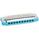 HH-2322 Ocean Rock Blue E; Diatonic harmonica; Ocean Rock Series; Tuning: E major; 20 high-quality reeds made of phosphor bronze; Comb body: ABS plastic (blue); highest product and sound quality; round holes; loud, rocking sound; modern, ergonomic design; lid made of high-quality stainless steel; incl. soft case and cleaning cloth