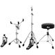 DW DWCP3000PKA7 Hardware Pack; Hardware pack; 3000 Series; DWCP3000PKA7; 4-piece; Pack consists of: DWCP3000A single pedal, DWCP3100 drum throne; DWCP3100 three-legged hi-hat stand and DWCP3300A snare stand