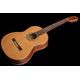 Die Gitarre ist mit verschiedenen Holzsorten optisch sehr ansprechend und mit Liebe zum Detail verarbeitet. Es hat optisch sehr gut sowie wertig, d.h. haltbar aussehende und leicht einstellbare goldene Deluxe Mechaniken mit schwarzen Flügeln, die Decke ist aus Zederholz, die Kanten haben helles Holz eingesetzt (vermutlich Fichte) und der Holzkorpus insgesamt hat eine matte Oberfläche.