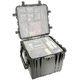 Peli 0340 Foam Black - robust potective case with cube foam inlay; dimpled foam in the lid; waterproof, shockproof, and dustproof; robust and lightweight; Automatic pressure equalization valve (equalizes the pressure in the case, does not allow water to enter); O-ring seal; Protection class: IP67; MIL-SPEC-certified; made of robust PC plastic; with stainless steel caster wheels and built-in, spring loaded pull handle; Large 2-person fold down handles; External dimensions (WxHxD): 521 x 521 x 489 mm; Internal dimensions (WxHxD): 457 x 457 x 457 mm, Colour: black; Weight: 13.5 kg; 0340-000-110E